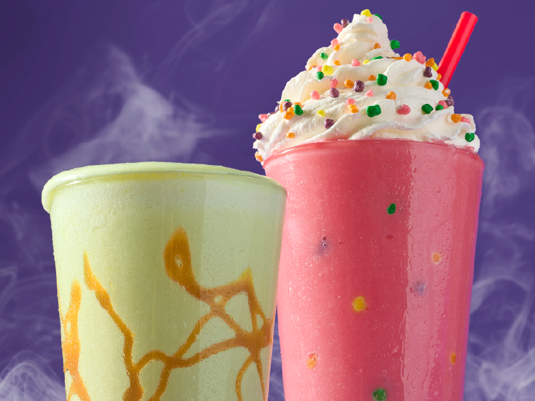 Sip on these scary good, candy-inspired flavors. The Caramel Apple Whip and Rainbow Candy Shake made with Nerds, only here for a limited time!