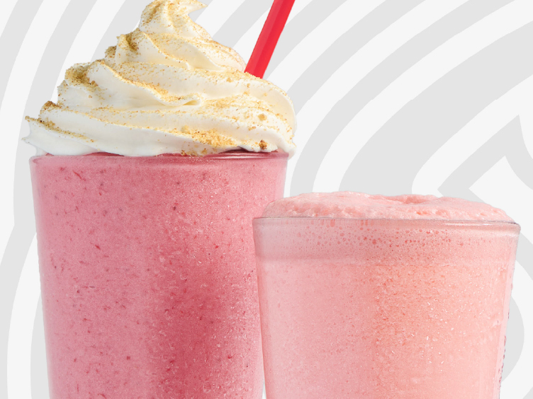 Take a sip our sweet & fruity Strawberry Cheesecake Shake or Strawberry Banana Whip. Only here for a limited time!